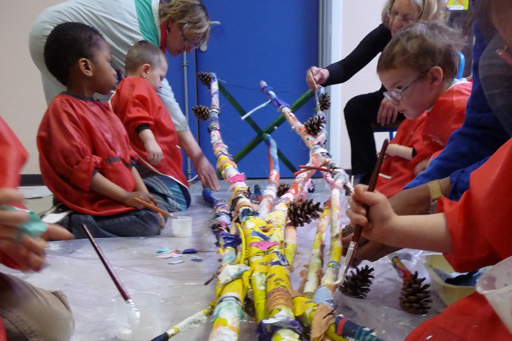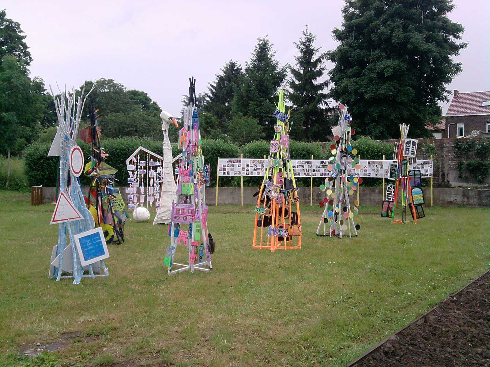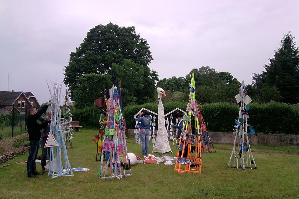 Par l'intervention d'une artiste plasticienne (Dorothée Péry), chacun des groupes a ensuite été amené à concevoir puis à réaliser son totem à souhaits, en fonction des réflexions qu'il souhaitait mettre en valeur.